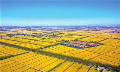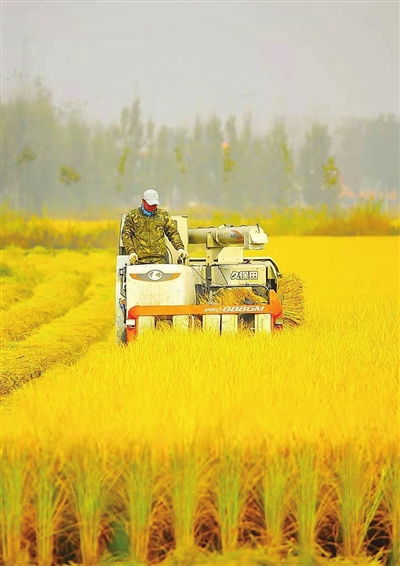 晨曦映照,田野铺金。微风拂过,稻香氤氲,一望无垠的稻田犹如黄金织锦,呈现出令人心动的秋色,稻农们脸上收获的喜悦,渲染着又是一年丰收的好光景。