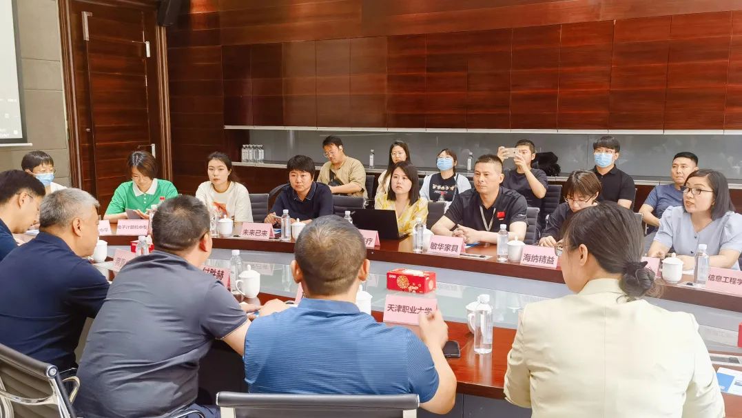 代表团实地参观了敏华家具(中国)有限公司展厅、工厂和天津海纳精益科技有限公司工厂,听取企业负责人介绍行业发展趋势、企业规模、用人需求等基本情况。并与敏华家具、海纳精益、华创瑞丰、未来已来、迪姆医疗、娃哈哈、艾默生7家有招聘需求的重点企业围绕深入推进校企合作和产教融合进行了深入的座谈交流。