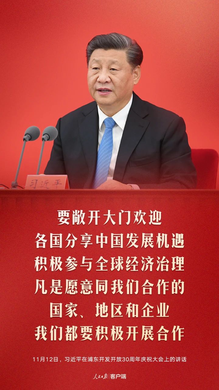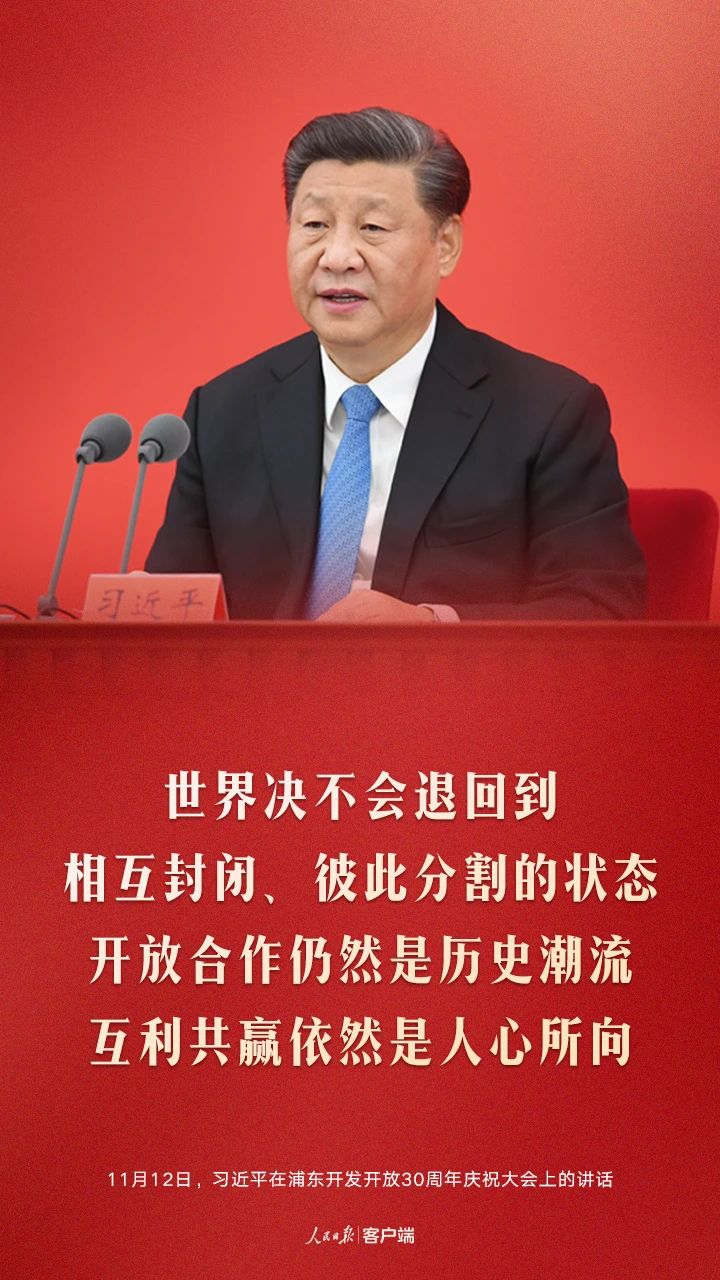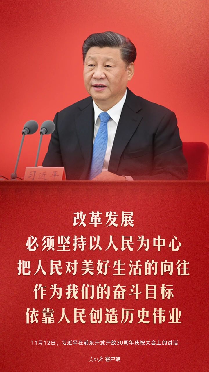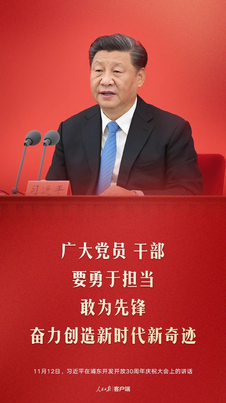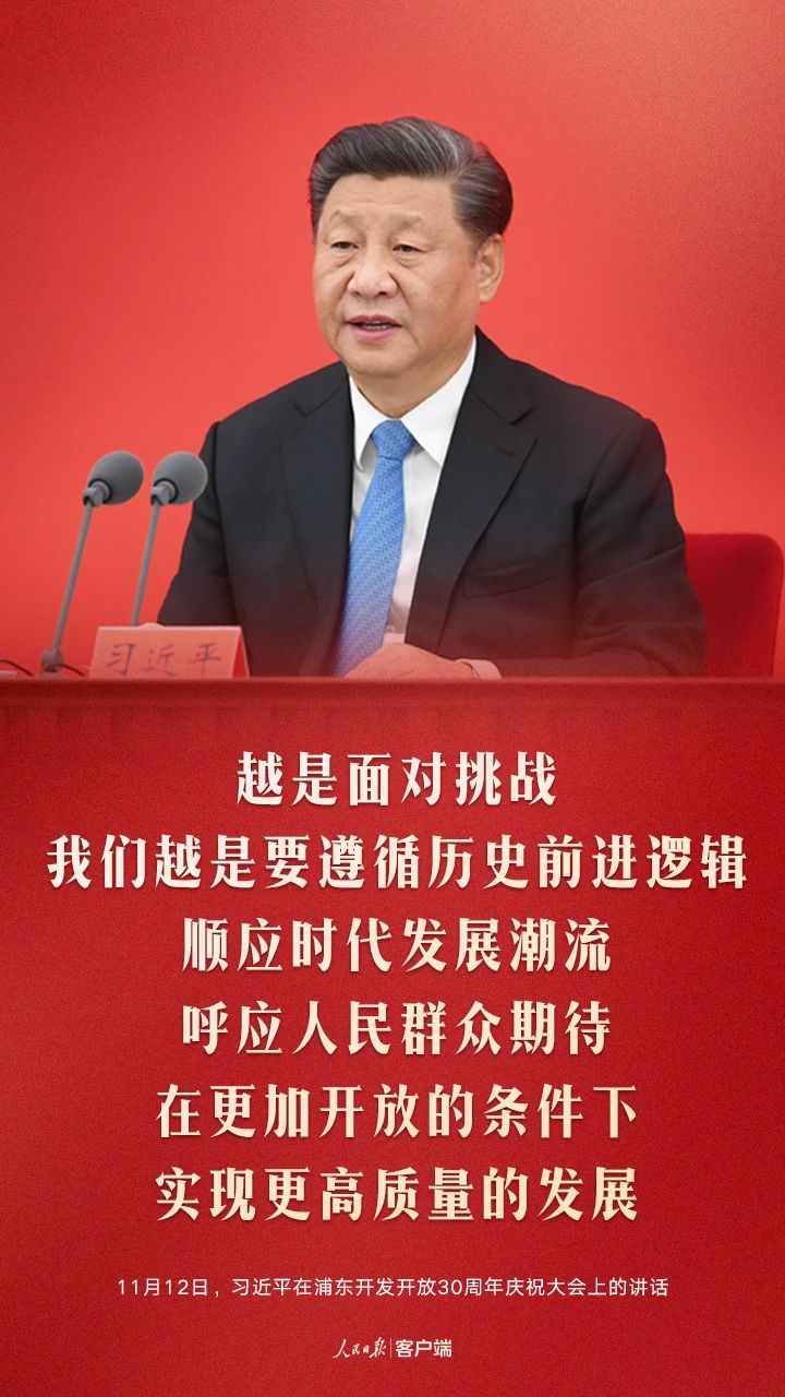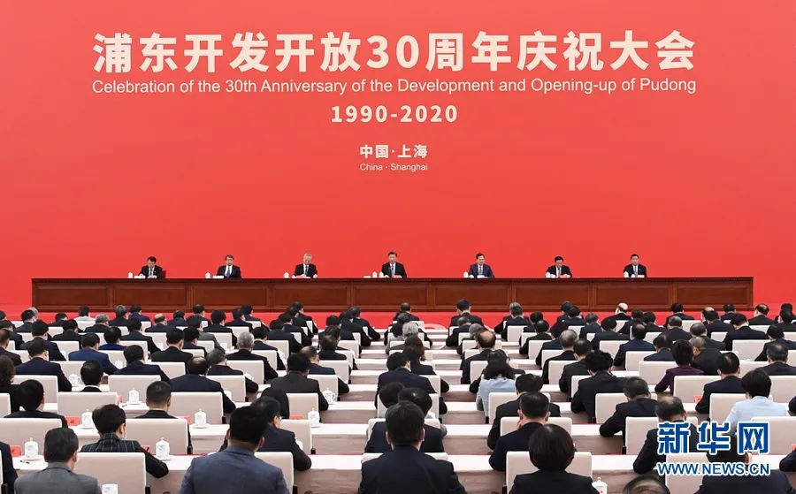 今天,我们在这里隆重集会,庆祝浦东开发开放30周年,就是要回顾历史、展望未来,支持浦东在全面建设社会主义现代化国家新征程中锐意进取,推进更深层次改革、更高水平开放,为实现全面建设社会主义现代化国家的奋斗目标、实现中华民族伟大复兴的中国梦作出新的更大的贡献!