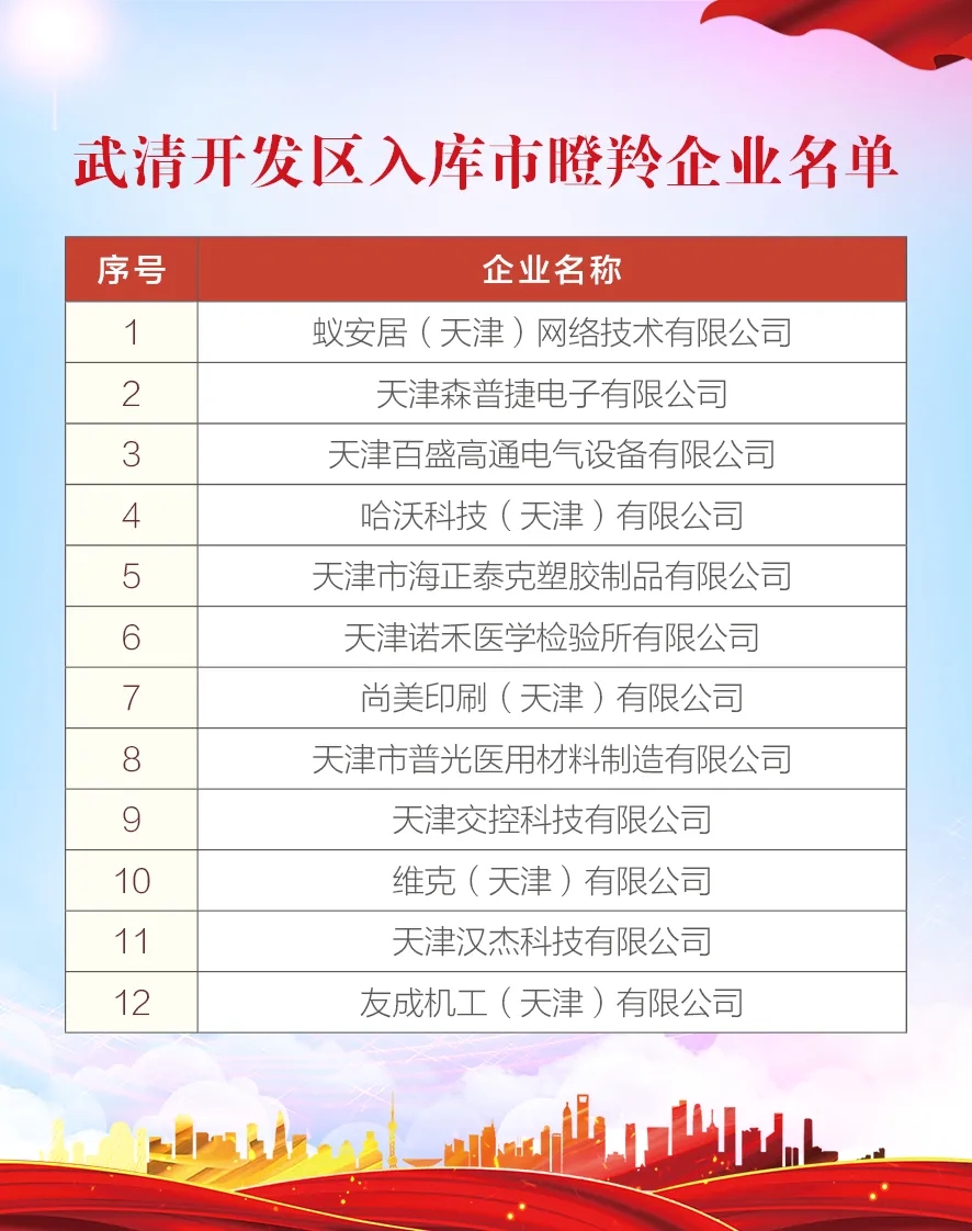 List of Inventory Enterprises in Wuqing Development Zone