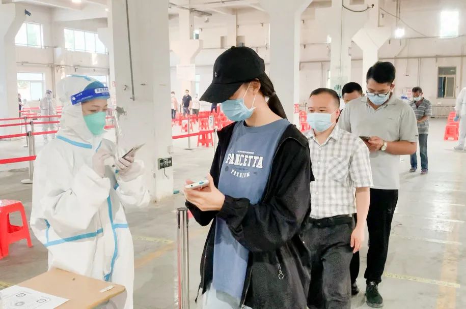 "At 4 o\'clock,there are already company employees queuing up.Everyone is very cooperative and contributes to the advancement of nucleic acid testing."