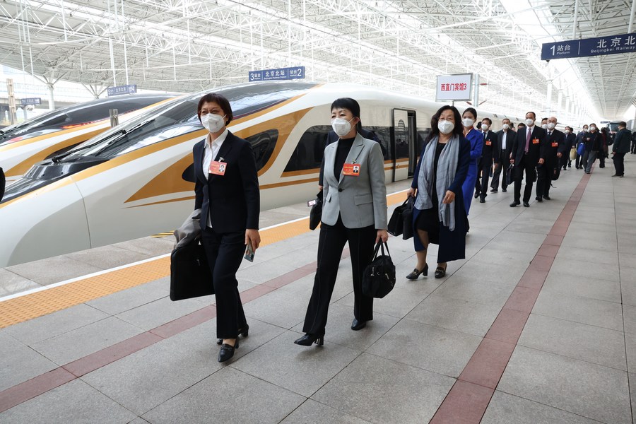 Delegates from Inner Mongolia Autonomous Region to the 20th National Congress of the Communist Party of China arrive in Beijing,capital of China,Oct.13,2022.(Xinhua/Zhang Yuwei)
