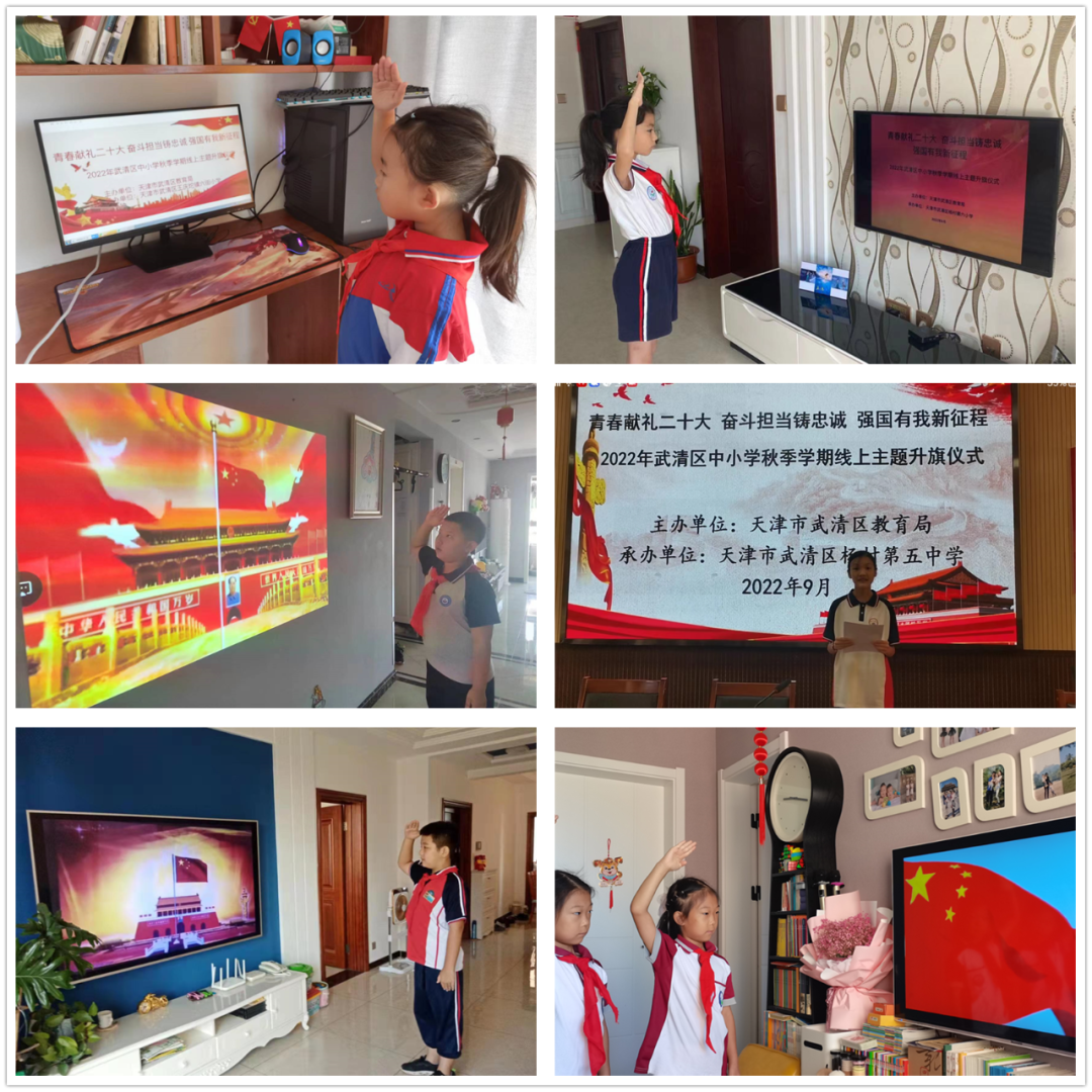 日前,武清区教育局组织开展“青春献礼二十大奋斗担当铸忠诚强国有我新征程”——2022年武清区中小学秋季学期开学线上主题升旗仪式。孩子们隔屏仰望国旗,在庄严的国歌声中向伟大祖国致敬,展现良好的精神面貌,进一步增强了理想信念。