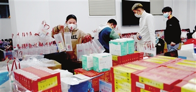 前天晚上开始,我市津药达仁堂集团员工放弃休息,连夜工作,于昨天将首批15万个“健康防疫包”分装完毕,发往各区。本报记者钱进通讯员谢辰摄