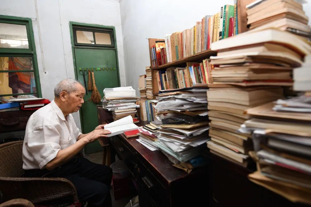在四川省达州市达川区,周永开在家中阅读书籍(2021年6月17日摄)。新华社记者王曦摄