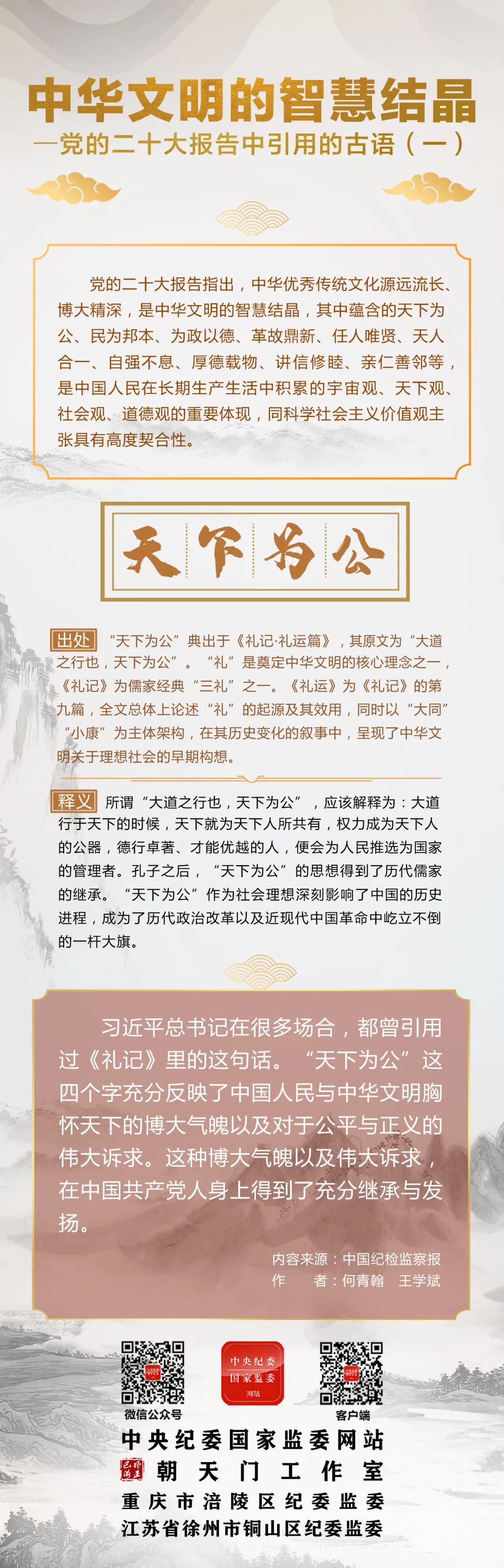 【清朗资讯·周周阅】二十大报告中引用的古语丨天下为公