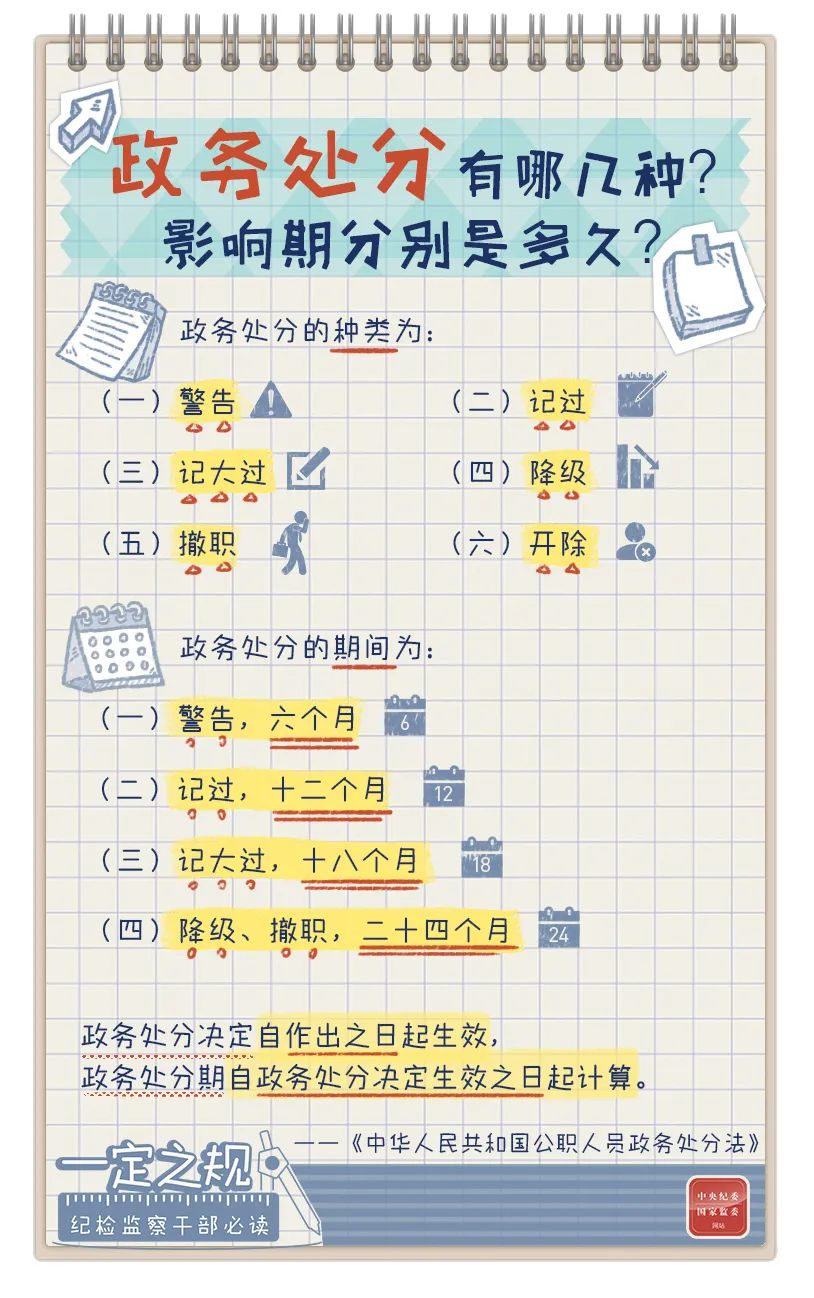 【清朗资讯·周周阅】一定之规•纪检监察干部必读丨政务处分有哪几种?影响期分别是多久?