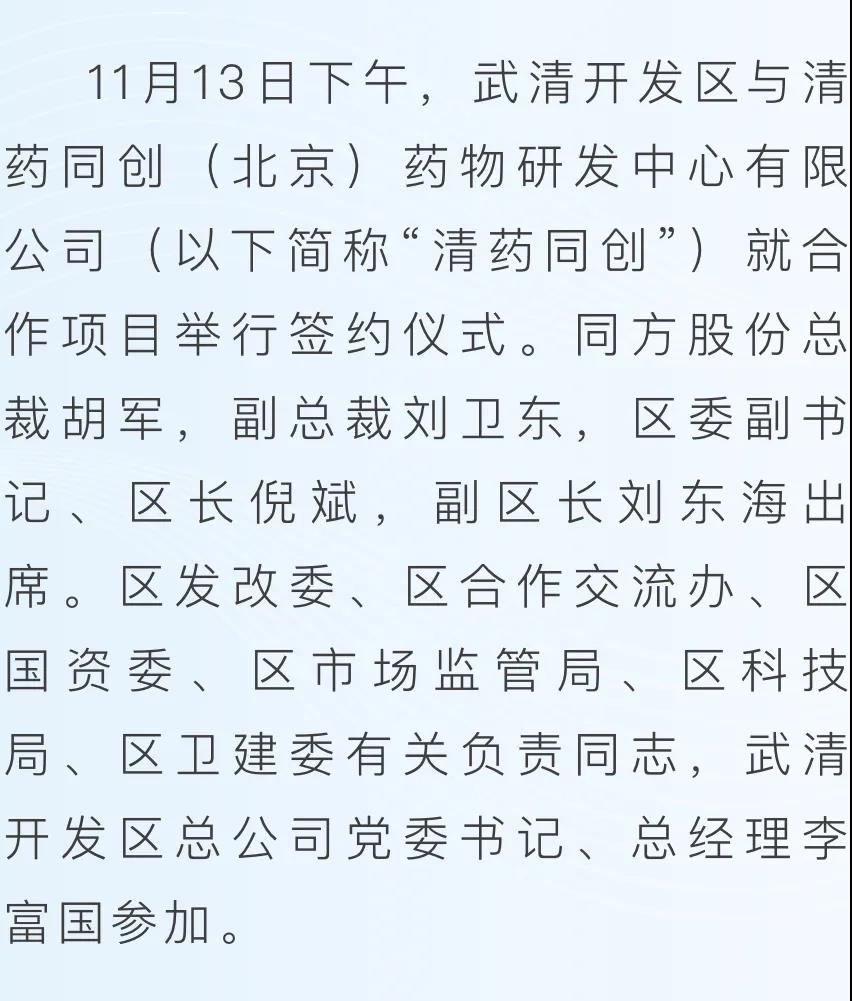 签约!清药同创创新药研发转化平台项目落户武清开发区(图1)