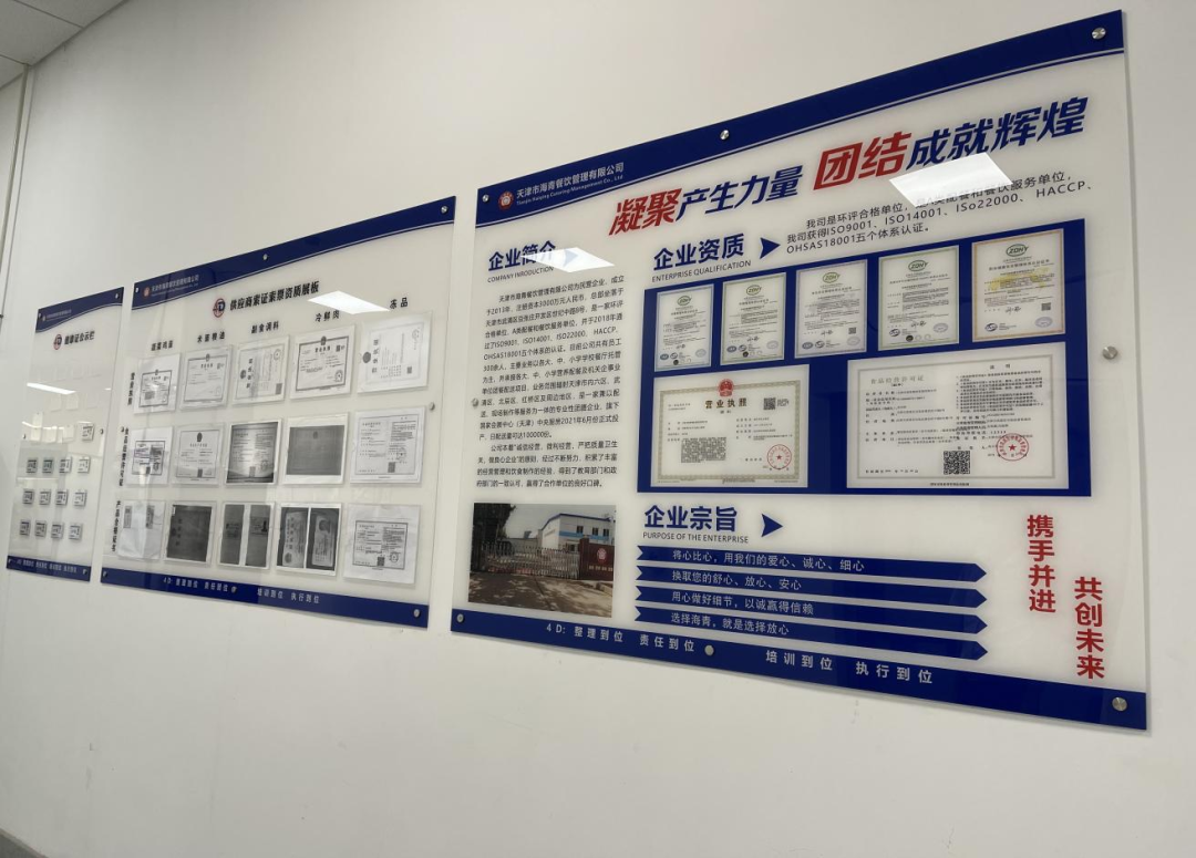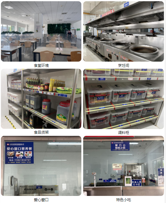 天津市百悦餐饮管理有限公司食堂设有更衣室、风淋室、消毒池、食品储藏间、食品冷藏室、实验室、加工区、烹饪区、分餐区、洗碗间等区域,配有留样柜、紫外线消毒、自动洗菜切菜、快速检验等先进设备。同时,严格制定规章制度、食品安全应急预案及相应记录台账,配备专职员工并明确分工,形成一整套管理运行模式。