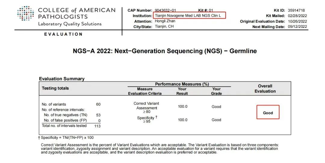 日前,美国病理学家协会(CAP)公布了2022年第一次Next Generation Sequencing(NGS)—Germline NGS-A能力验证项目成绩,天津诺禾医学检验所顺利通过考核。