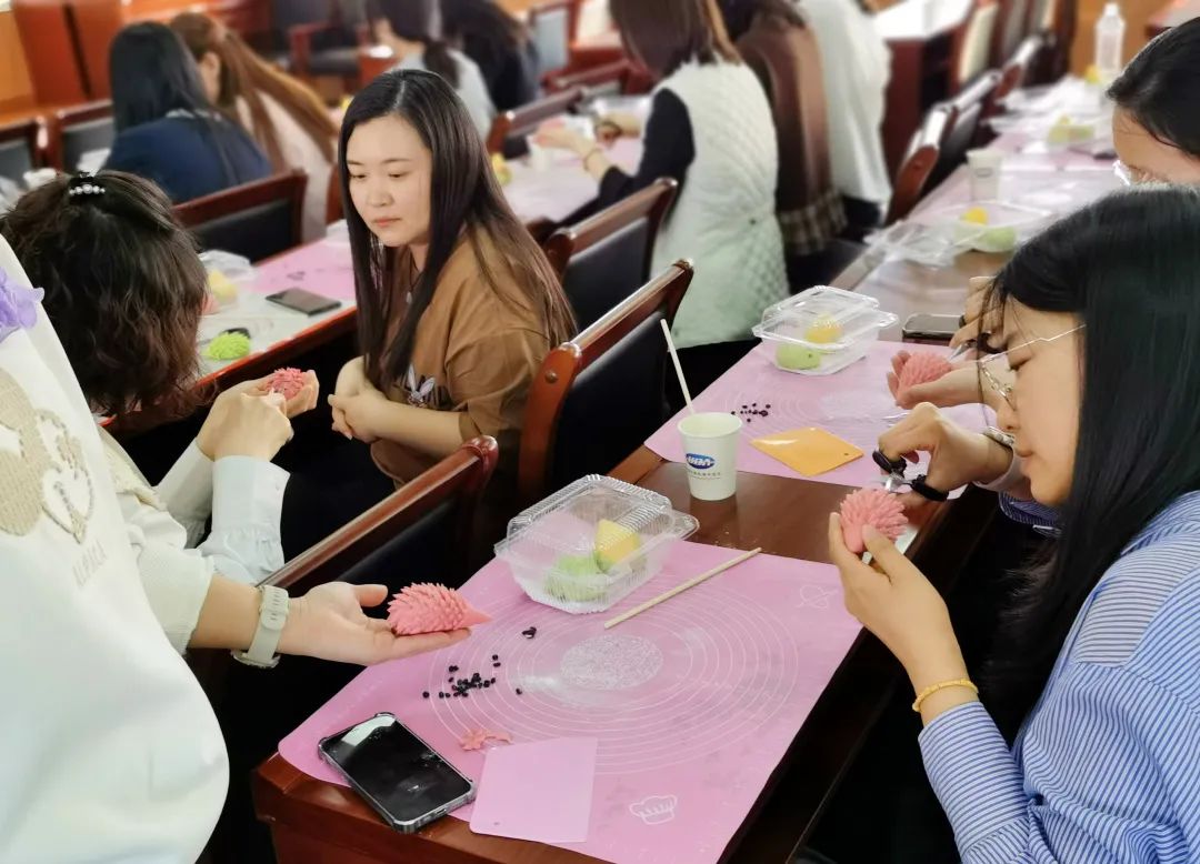 活动中,专业面点老师现场教学,详细讲解花式面点的制作流程和技巧,手把手教授揉面、制作的基本要领,大家一边创作一边交流探讨,现场氛围轻松愉快。在老师的指导下,一个个造型各异、精致美观的花式面点便制作成功了。“通过这堂课,我们不仅学会了‘小刺猬’‘小兔子’等花式面点制作,更得到了放松,幸福感满满!”学员纷纷表示。