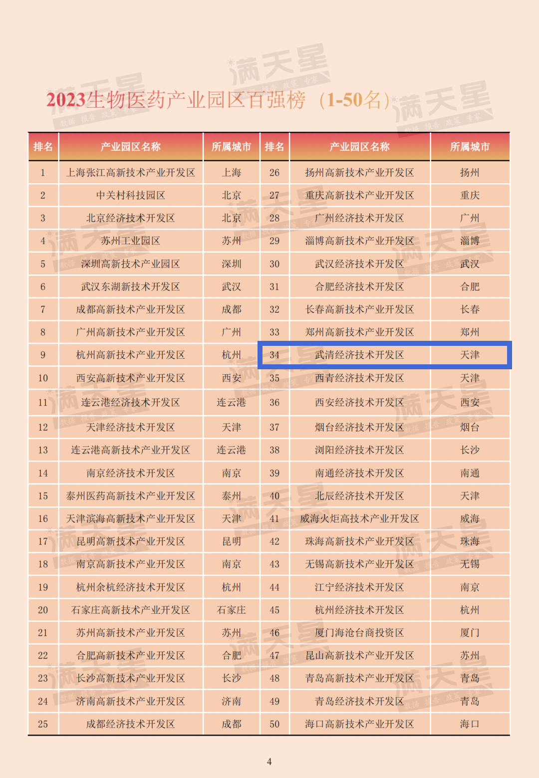 日前,工信部中国电子信息产业发展研究院直属机构赛迪顾问发布全国《2023生物医药产业园区百强榜》,武清开发区位列第34名,较上一年提升14个名次,实现进位突破。这是赛迪顾问第四个年度发布该榜单,武清开发区连续四年上榜。