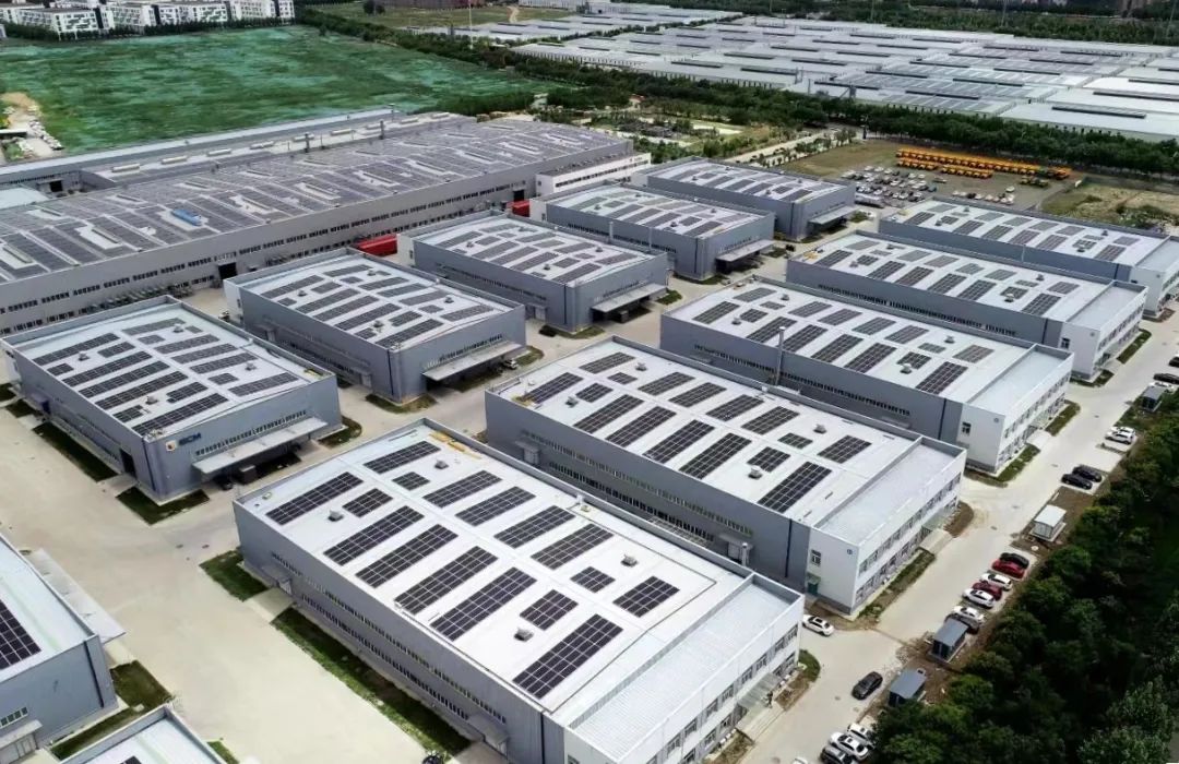 同力重工6MW分布式光伏发电项目总占地面积60000平方米,利用厂房屋顶、设备用房屋顶等,一期总装机容量2.24MW,首年总发电量约为290万KWh,相当于全厂80%年用电量。目前,该项目已建成投用,可使工厂每年减少二氧化碳排放量1500吨,节约人民币约60万元。