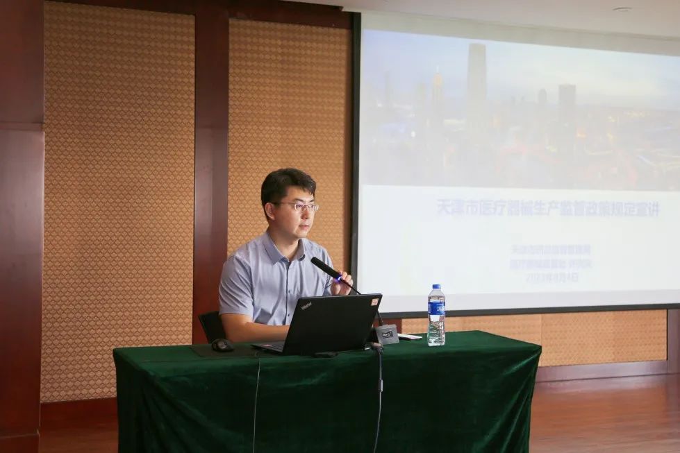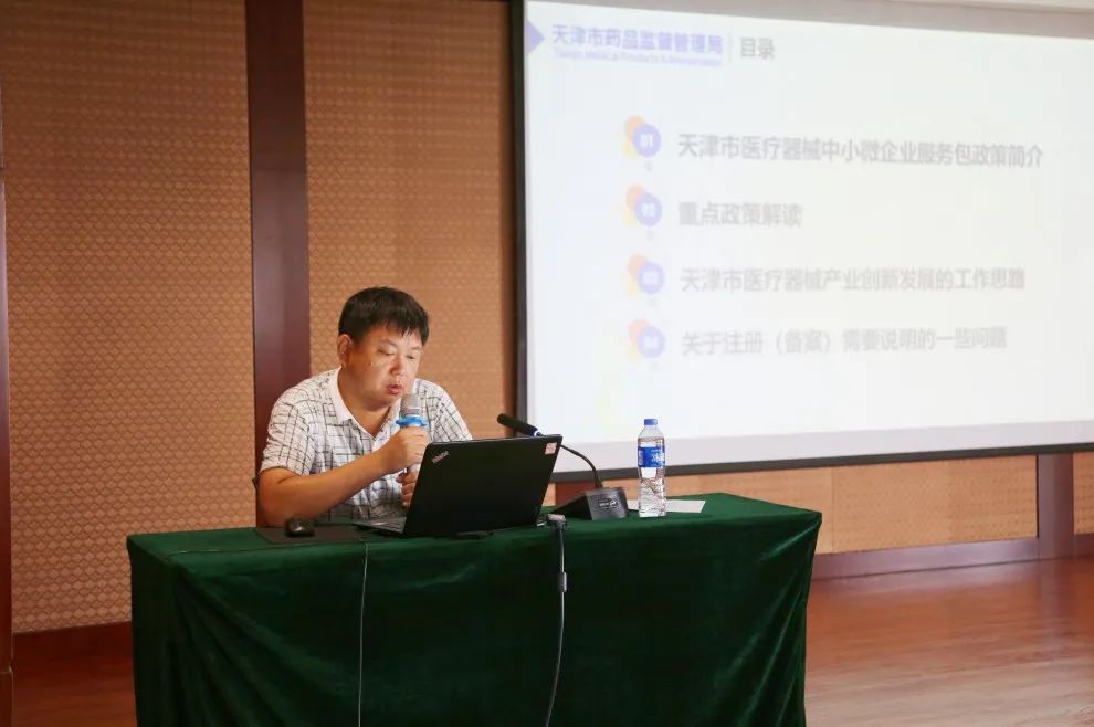 此次宣传会由天津市药品监督管理局主办,武清开发区、中科智远企业管理咨询有限公司承办。会上,市药监局专家分别对《天津市医疗器械生产监督管理实施细则》和《天津市药监局关于鼓励医疗器械中小微企业高质量发展的若干措施》进行了详细讲解,围绕天津市医疗器械经营企业开办要求、天津市医疗器械检验中心承接项目范围、天津市医疗器械审评提前介入服务举措、医疗器械不良事件监测工作法规要求等内容进行了细致介绍。