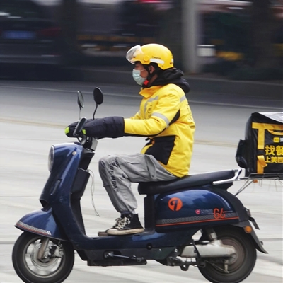 外卖小哥驾驶摩托为顾客送餐。新华社发