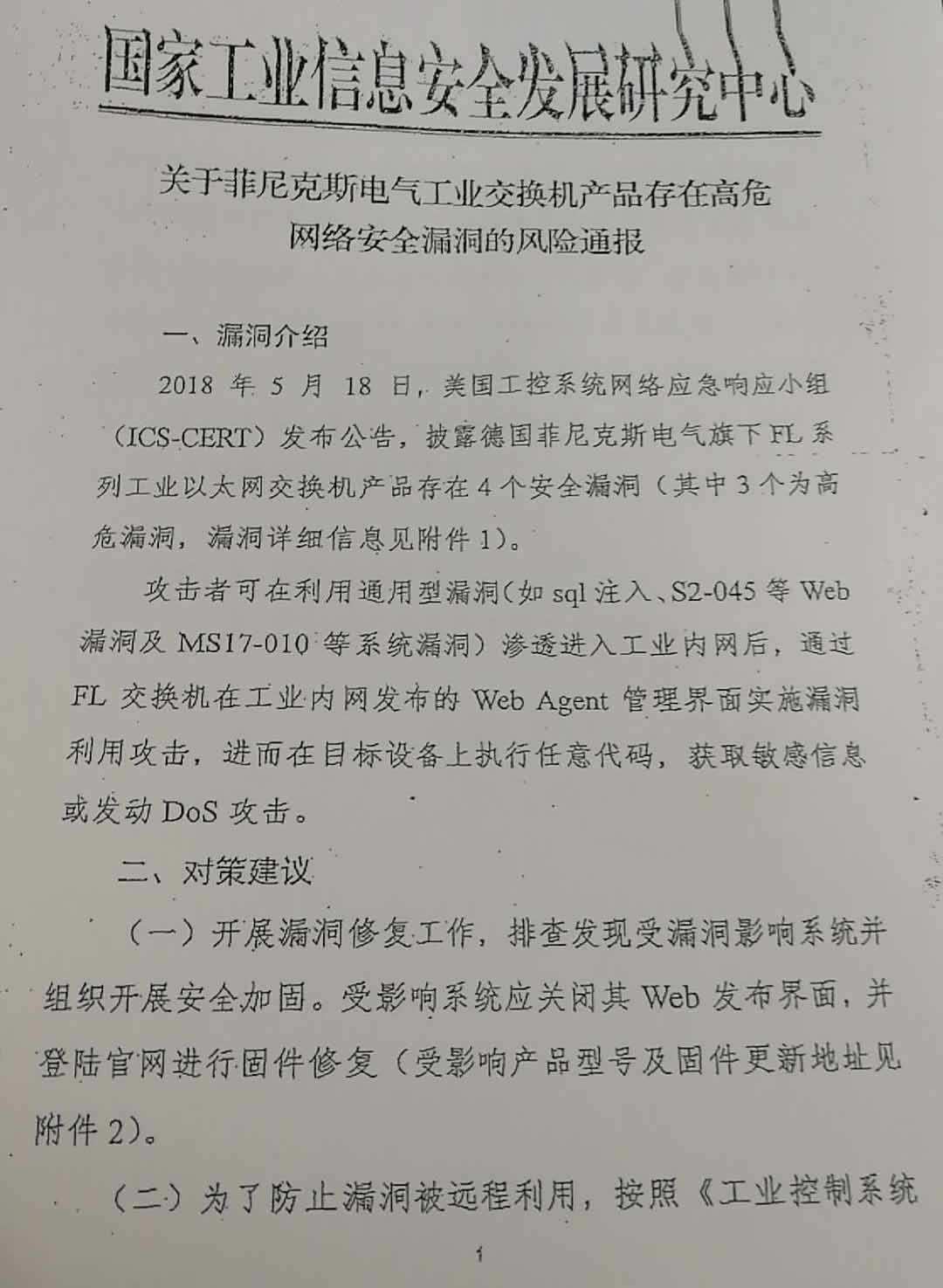 关于转发《市工业和信息化委员会关于转发菲尼克斯电气工业交换机产品存在高危网络安全漏洞风险通报的通知》的通知