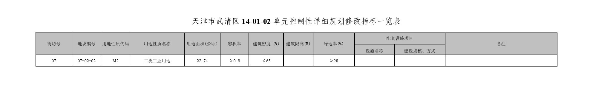 天津市武清区14-01-02单元控制性详细规划修改指标一览表