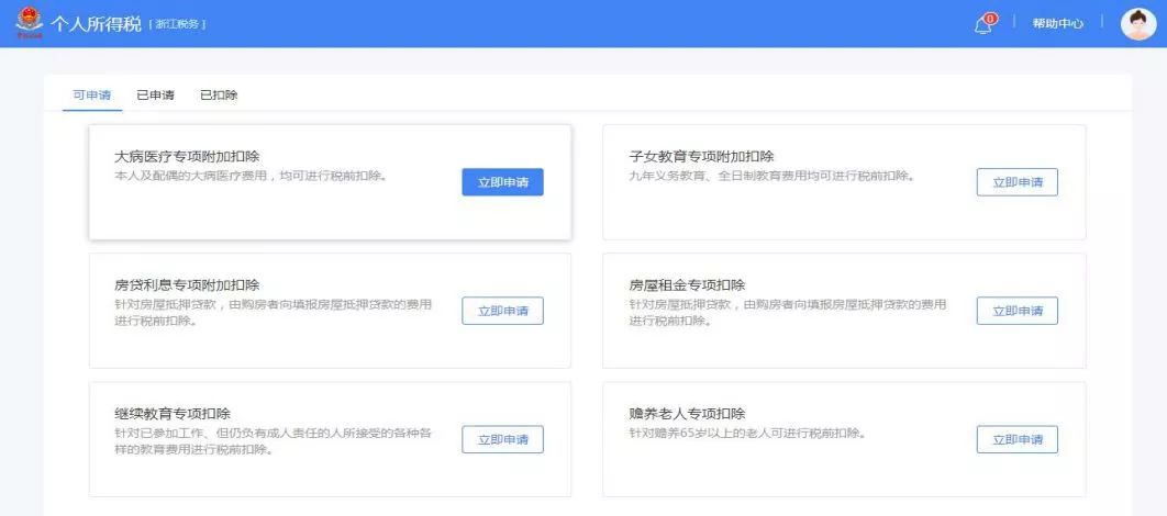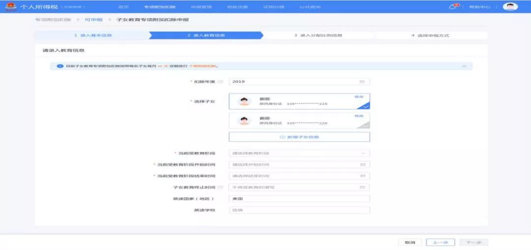 选择“子女教育专项附加扣除”—立即申请
